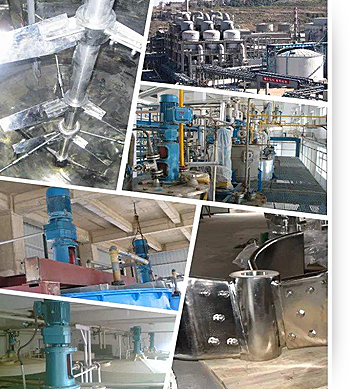 脫色罐:主要攪拌目的是物料輕輕攪動脫色,低轉速大直徑的轉動,不能使物料大范圍的攪拌以破壞脫色效果。使用的槳葉形式有:斜葉槳式(XJ、HJ、QJ等)。